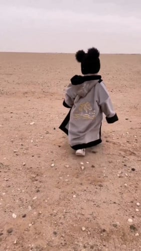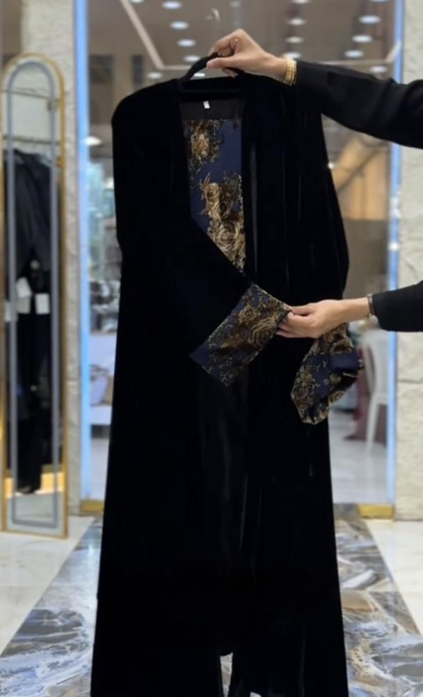 القماش : مخمل اسود + أكمام شيفون مخمل