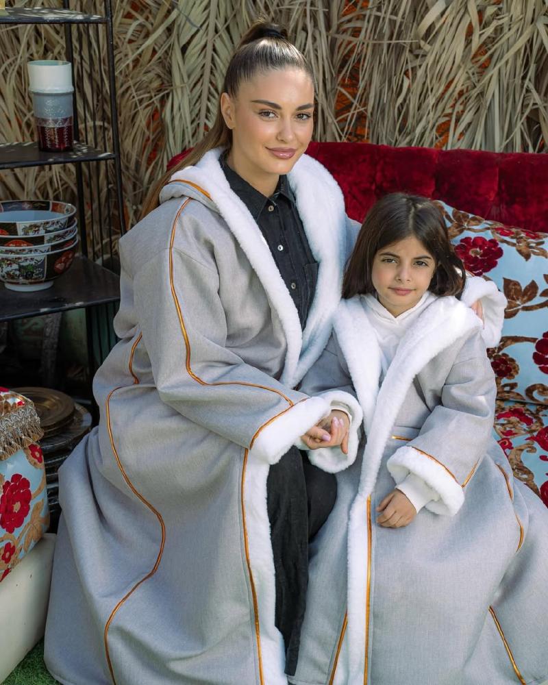 يجمع هذا الطقم الشتوي بشكل رائع بين أناقة الأم وراحة البنت، حيث يتناسق التصميم ليعكس التوافق بينهما.