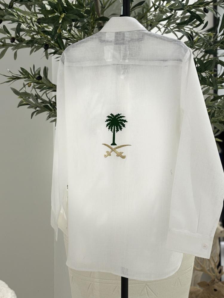 مع تطريز سيفين ونخلة كبير بالخلف حدود 20 سم + صغير من الامام حدود 7 سم