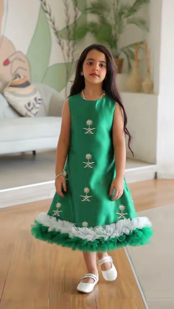 يتميز فستان اليوم الوطني الجديد بتصميم عصري وأنيق يجمع بين عناصر التراث والعصرية، مما يجعله مثالياً للاحتفالات والمناسبات الرسمية.