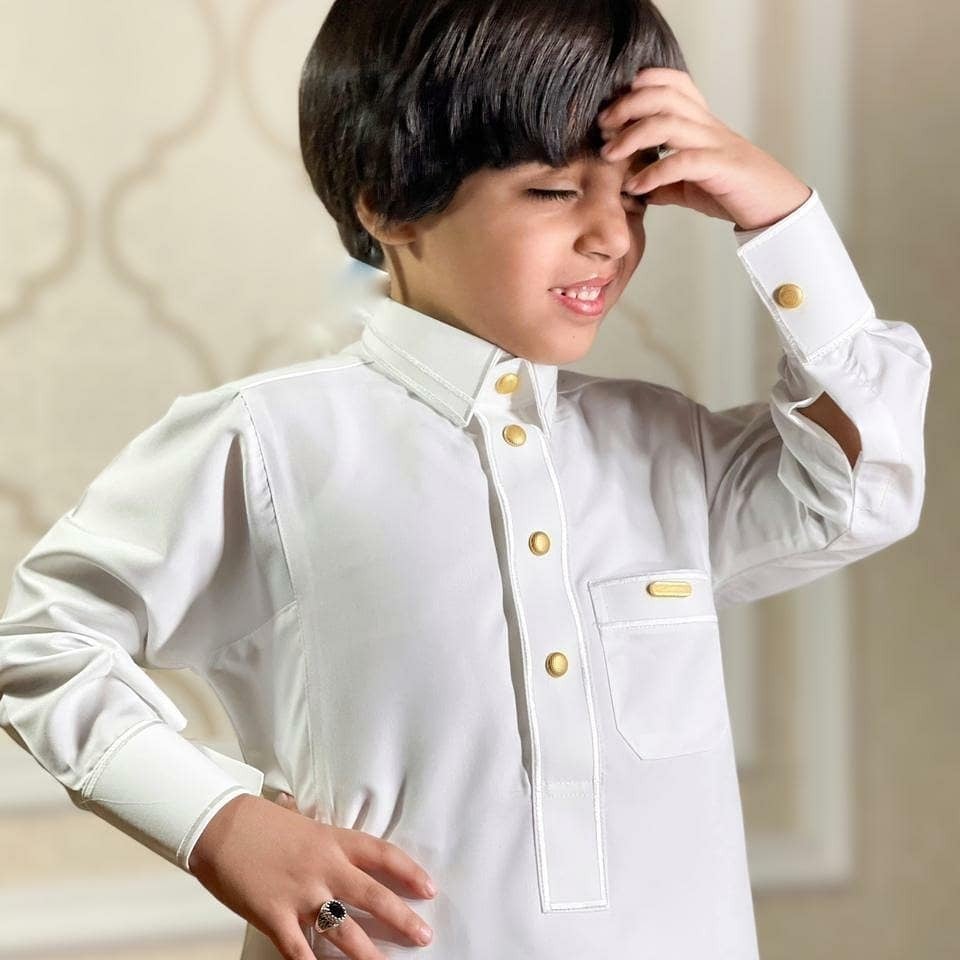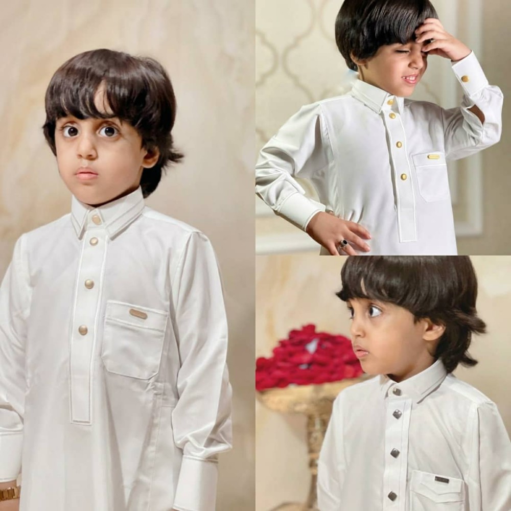 ثوب بقماش فاخر بتطريز بخيوط حرير وبلمسات معدينه تضيف الاناقه المستخدمة لطفلك