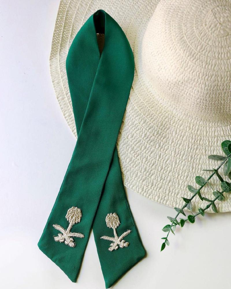 هذه الربطه تتميز بتصميمها الفريد الذي يحمل شعار الهوية الوطنية، السيفين والنخلة، مما يمنحها طابعًا مميزًا لا مثيل له.