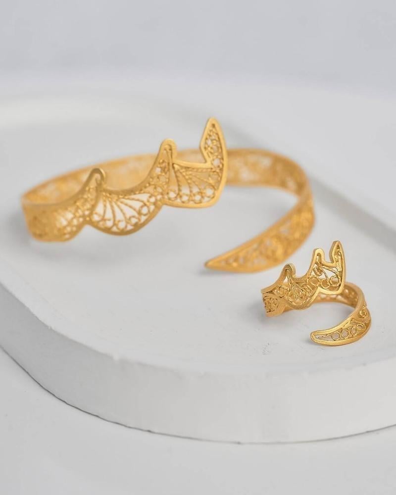 بكج مميزه جدا بتصميم الحرف العربي، مطلي بطلاء ذهب او فضة مع ضمان سنتين على اللون طبعا مع علبه مخصصة وكيس