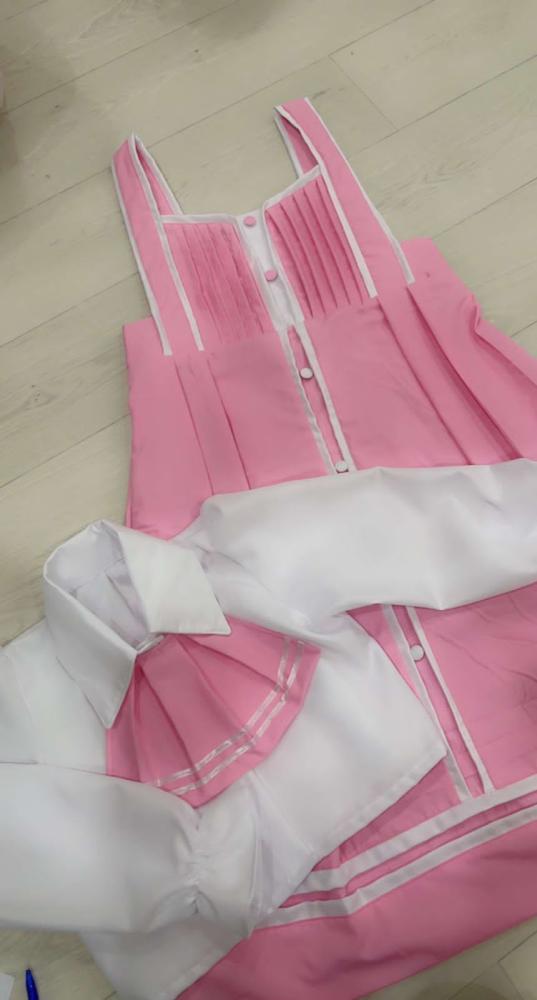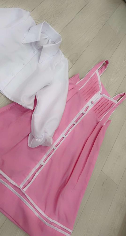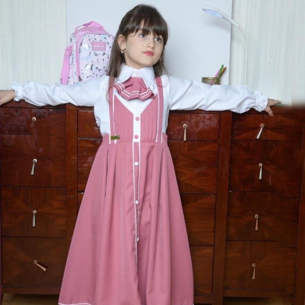 مقارنة مريول ابتدائي وردي التصميم والجودة - يتميز هذا المريول المدرسي بتصميم فاخر يغمر الطالبة براحة ممزوجة بالأناقة.
