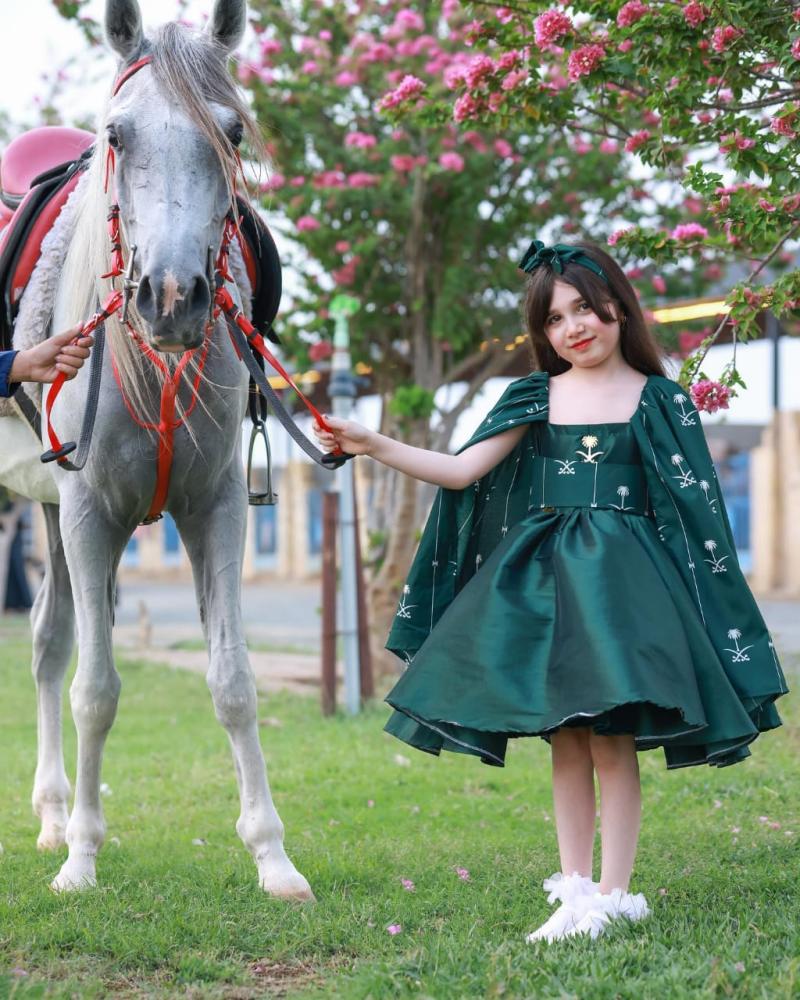 يتميز هذا الفستان بدمج رائع بين الأناقة والهوية الوطنية لتقديم إطلالة فريدة في الاحتفالات.